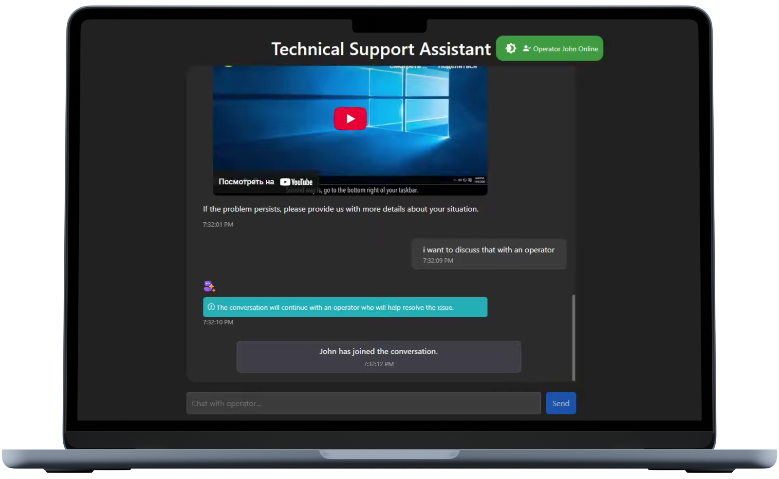 Multilingual support with sentiment analysis and intelligent handoff to operators.