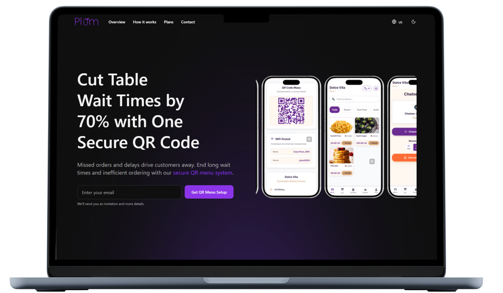 - Dual menu system: Public (read-only, QR accessible) + Interactive (full ordering)