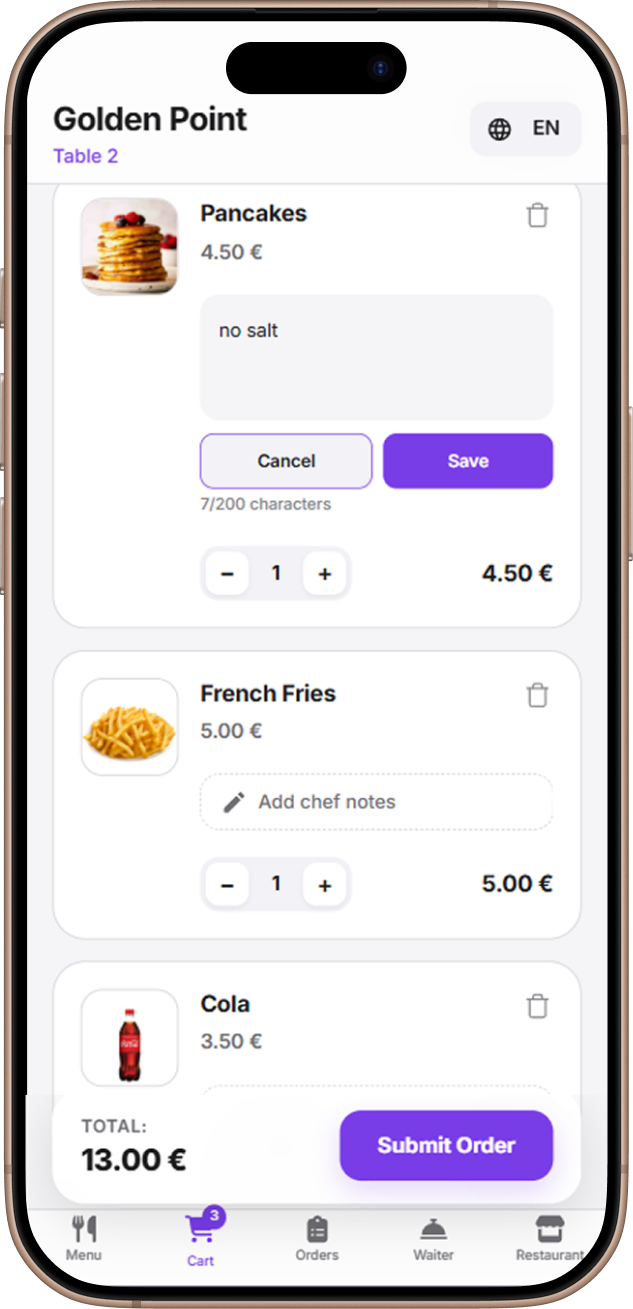 - Push notifications for waiter alerts